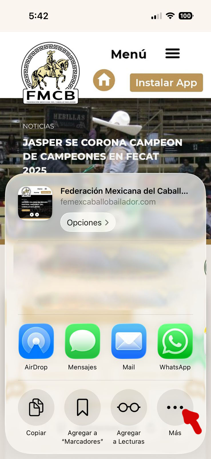 3- En las opciones de compartir da clic en Más (…)