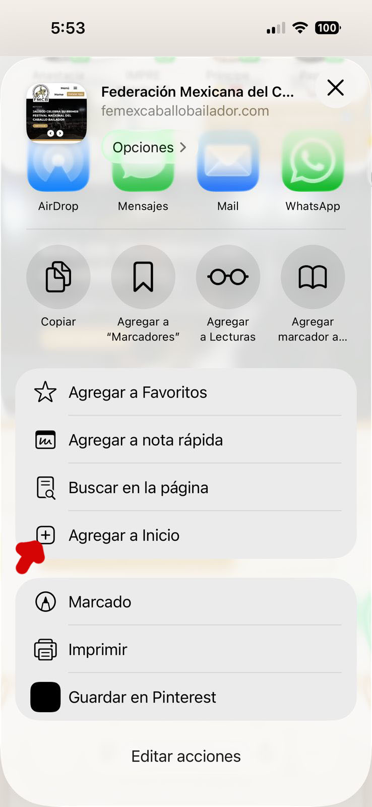 4- Y elige (➕) “Agregar a inicio” para instalar la app.